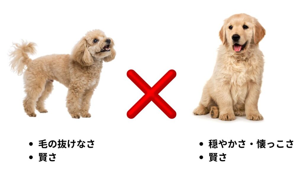 どちらも、プードルの「抜け毛の少なさ」や「賢さ」と、レトリーバーの「穏やかで人懐っこい性格」を兼ね備えた理想の家庭犬を目指して生まれました。