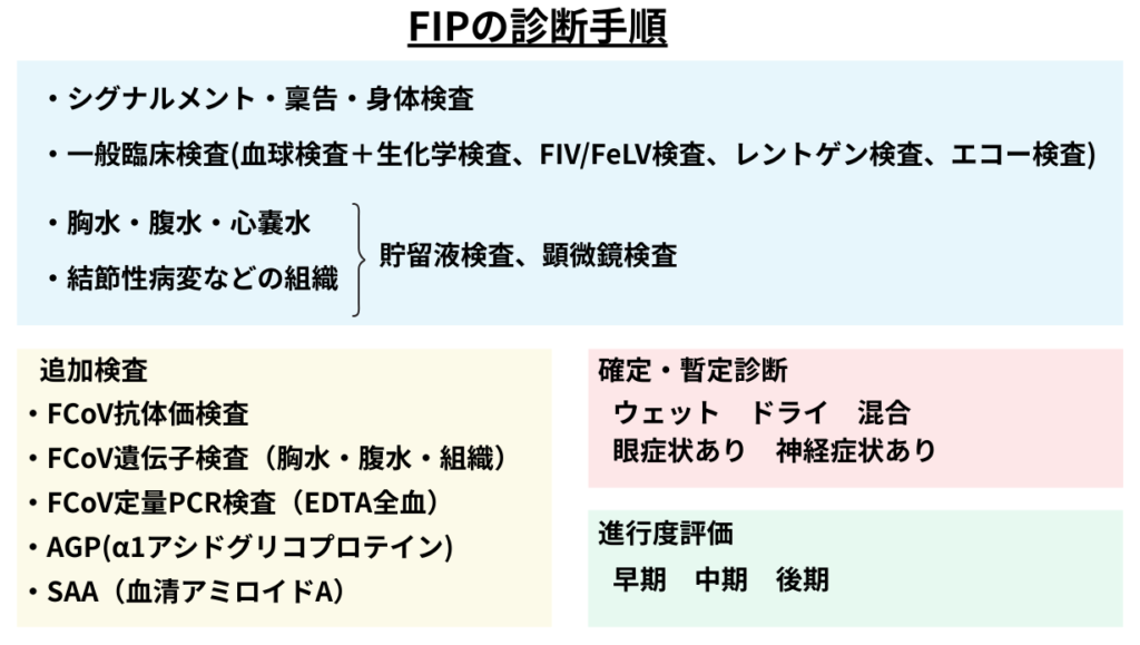 FIPの診断は主に以下の検査にて総合的に判断します。