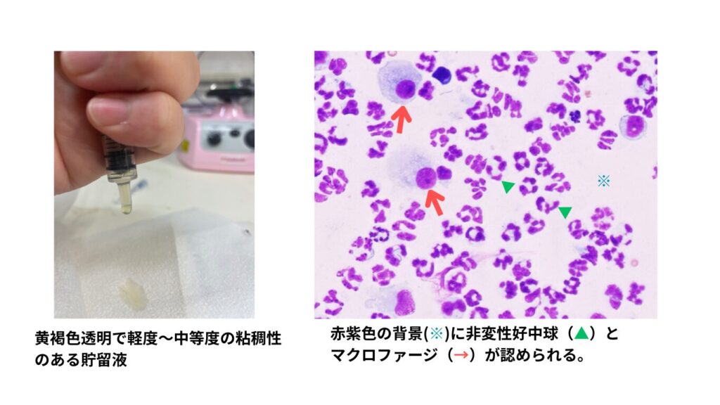 一方、貯留液を伴わないドライタイプFIPでは、直接的診断に至ることが難しく、単一検査での確定診断は困難です。
