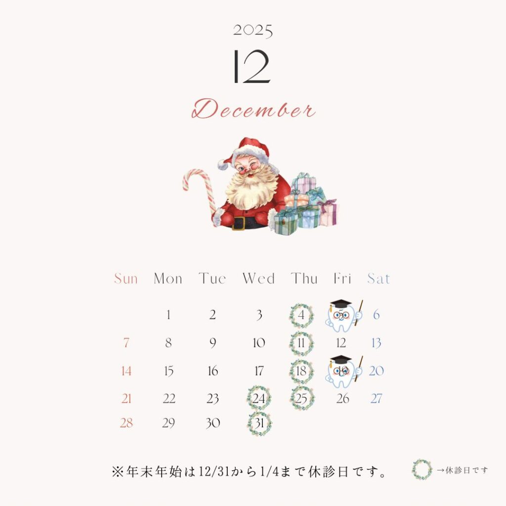 休診日は、毎週木曜日と12/24(水)となります。